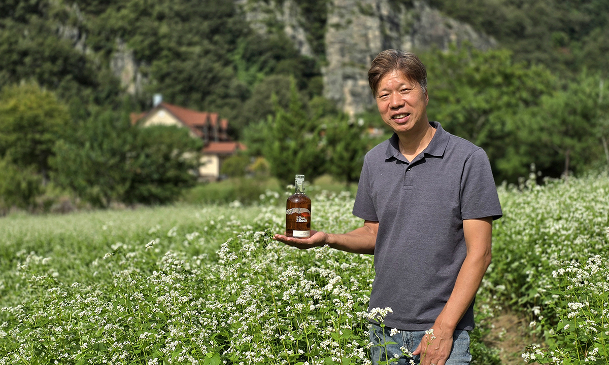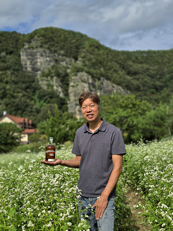 박성호 맹개마을 대표 겸 밀과노닐다 기획이사가 경북 안동시 맹개마을 메밀밭에서 포즈를 취하고 있다. 500년 전 전통 밀소주 ‘안동 진맥소주’를 복원해 세계 시장에서 호평을 받고 있는 박 대표는 맹개마을을 건강한 자연 식재료와 전통 소주를 즐기는 여행지로 만들어 가고 있다. 안동=최현태 선임기자