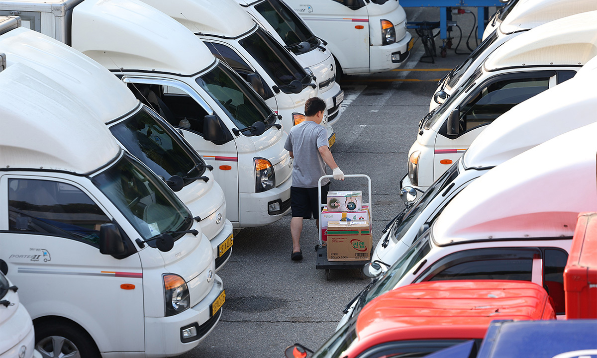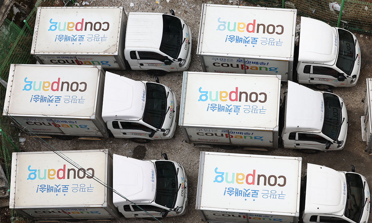 서울 시내 한 주차장에 쿠팡 배달 트럭들이 모여 있는 모습. 연합뉴스