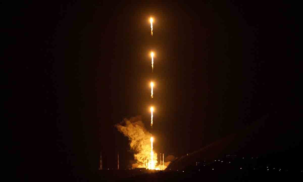 한국형 발사체 누리호가 11월 27일 새벽 전남 고흥군 나로우주센터에서 발사되고 있다. 레이어 합성