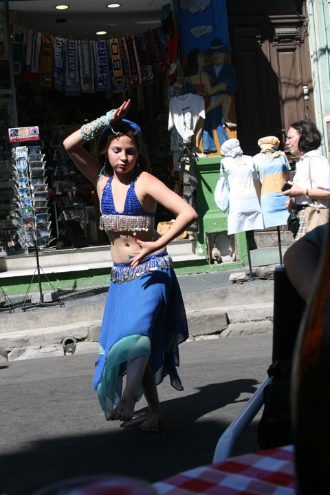 | ◇보카거리 한 카페 앞에서 10대 소녀가 삼바 춤을 추고 있다. 카페 주인집 딸인 그는 손님들에게 춤 대가로 돈을 받는다. |