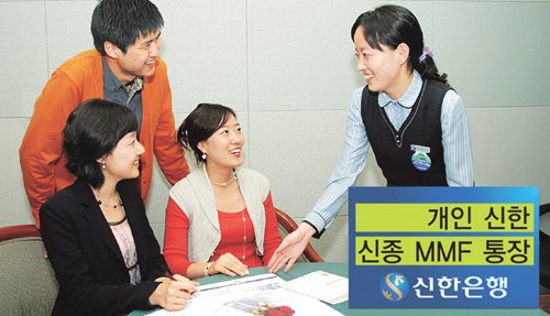 | ◇재테크 전문가들은 머니마켓펀드(MMF) 가입 시 서두르지 말고, 수익률과 이 펀드가 투자하는 채권 종류 등을 꼼꼼히 살펴볼 것을 권한다. 신한BNP파리바자산운용 직원이 고객들에게 자사의 ‘개인용 신한 신종 MMF 제2호’ 상품을 설명하고 있다. 신한은행 제공 |
