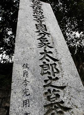 ◇일본 쓰시마시 고쿠분지 뒤 공동묘지 최정상에 있는 고쿠분쇼타로의 묘비 왼쪽 아래에는 한자로 ‘후작 이완용 서’라고 쓰여 있다.