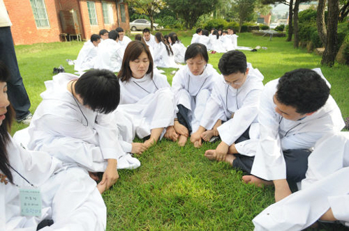 | 천주교 수도원에서 운영하는 피정 프로그램 참가자들이 명상을 통해 자신을 되돌아보고 있다. 한국천주교중앙협의회 제공 |