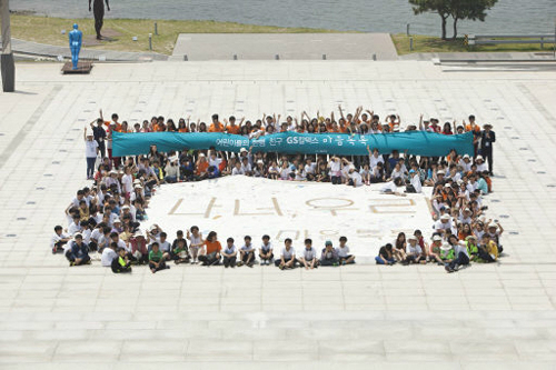 | 지난 5월 전남 여수의 문화예술공원 ‘예울마루’에서 열린 ‘마음톡톡 캠프’에 참가한 이들이 기념사진을 찍고 있다. GS칼텍스 제공 |