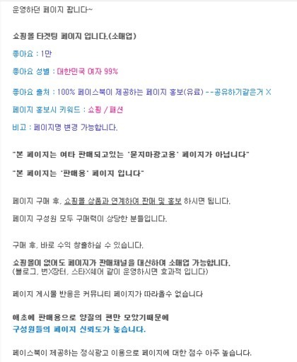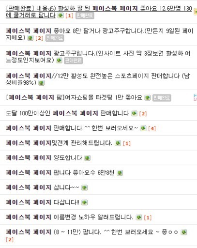 ‘페이스북 페이지(8∼11만) 팝니다. 한 번 보러 오세요.’