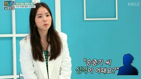 민효린은 8일 밤 첫 방송된 KBS2 예능프로그램 ‘언니들의 슬램덩크’에 출연해 송중기를 언급했다.