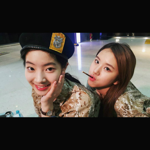 공개된 사진 속 트와이스 다현과 채영은 KBS2 '태양의 후예'와 비슷한 의상으로 '걸크러쉬' 이미지를 자아내고 있다. 특히 다현과 채영은 잘 어울리는 군복과의 조화로 보는 이들을 깜짝 놀라게 했다.