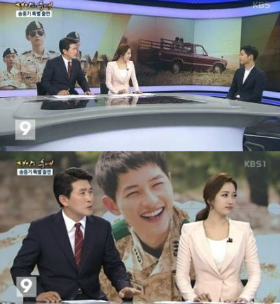 공개된 게시물 속에는 과거 KBS2 '태양의 후예'로 뜨거운 사랑을 받았던 배우 송중기가 KBS1 '9시 뉴스'에 나온 방송 장면이 담겨있다. 당시 김민정 아나운서는 송중기를 인터뷰한 미모의 앵커로 주목받았던 것.