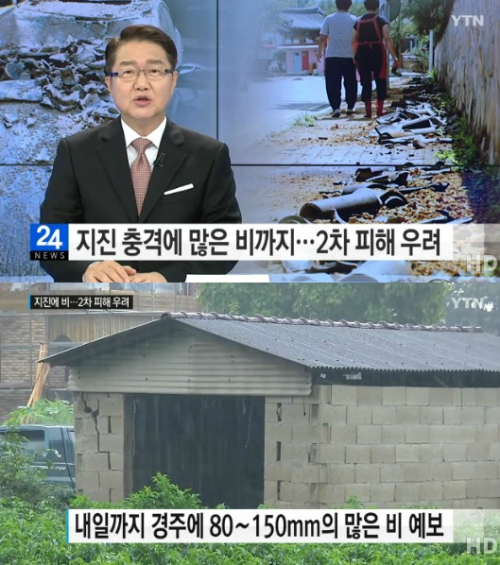| 사진=YTN `지진 충격에 많은 비까지...경주 2차 피해 우려` 방송 캡쳐 |
