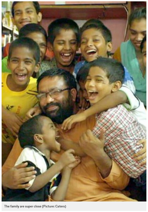 | 인도 뭄바이에 사는 라집 토마스(44·앞줄 가운데)가 아이들과 즐거운 한때를 보내고 있다. |