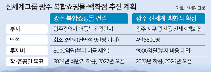 신세계그룹은 17일 라마다플라자 광주호텔에서 ‘신세계그룹 광주 개발 기자간담회’를 열고 광주 서부 어등산 관광단지에 호남권 최초의 복합쇼핑몰 건립을 추진하겠다고 발표했다. 기존 광주신세계도 대대적인 확장 공사를 통해 ‘광주신세계 아트 앤 컬처 파크(Art&Culture Park·가칭)’로 탈바꿈한다.