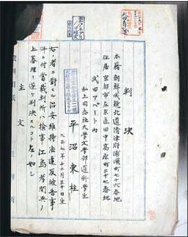 일본 교토에 있는 ‘시인 윤동주 기념비 건립위원회’(대표·안자이 이쿠로)는 지난 8일 윤동주를 기소한 교토지방검찰청이 판결문 원문의 열람을 허용, 이를 사진으로 찍어 공개하게 됐다고 14일 밝혔다.