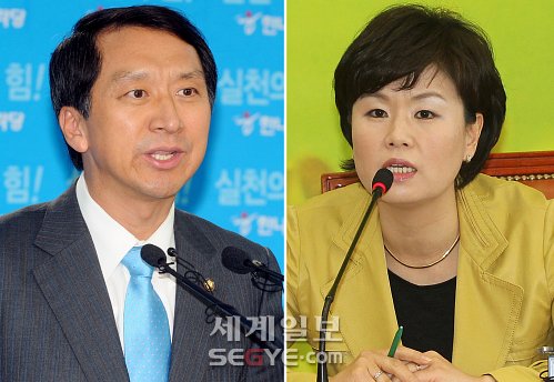 ◇김황식 국무총리 후보자 인사청문특위 여야 간사인 한나라당 김기현(왼쪽), 민주당 김유정 의원이 26일 각각 여의도 당사와 국회 원내대표실에서 기자회견을 갖고 29일부터 이틀간 진행되는 김 후보자 청문회에 대한 입장을 밝히고 있다. 이범석 기자 |