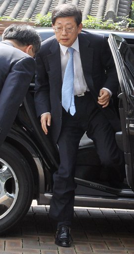 ◇김황식 국무총리 후보자가 국회 인사청문회를 이틀 앞둔 27일 아침 서울 통의동 금융감독원 별관의 사무실에 도착, 승용차에서 내리고 있다. 연합뉴스 |