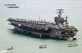 칼 빈슨호는 니미츠급으로는 세 번째 항모로 1983년 3월 취역했다. 2005년 미 7함대에 배속됐고 길이 333m, 너비 40.8m, 비행갑판 길이 76.4m에 2기의 원자로를 갖고 있다. F/A-18 전폭기 24대, 급유기 10대, S-3A 대잠수함기 10대, SH-3H 대잠수함작전헬기 6대, EA-6B 전자전기 4대, E-2 공중조기경보기 4대 등을 탑재하고 있다.