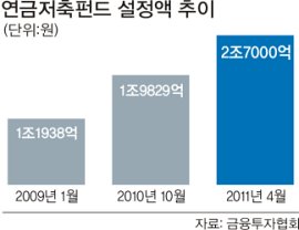 1일 금융투자업계에 따르면 2008년 연금저축펀드 전체 설정액은 1조2000억원대에 불과했지만 올해 2조7000억원 수준으로 가파르게 성장하고 있다.