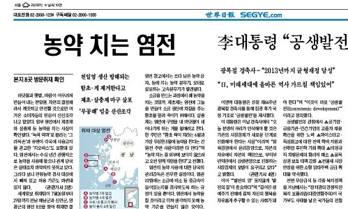 | 염전의 농약살포 실태를 고발한 8월16일자 세계일보 보도. |