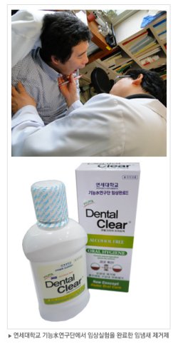임상을 담당했던 연세대학교 기능水연구단장 이규재 의학박사는 “입냄새 제거제는 국내 대학의 임상사례는 이번이 첫 사례로 無알코올 제품이라 부작용이 없는 것이 가장 큰 특징이며 하루 1번 사용으로 입냄새를 제거할 수 있는 우수한 제품이다.”라고 설명했다.