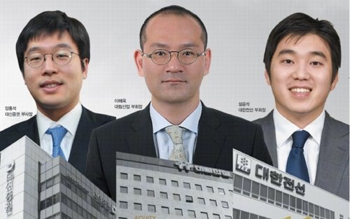 왼쪽부터 양홍석 대신증권 부사장, 이해욱 대림산업 부회장, 설윤석 대한전선 부회장 |