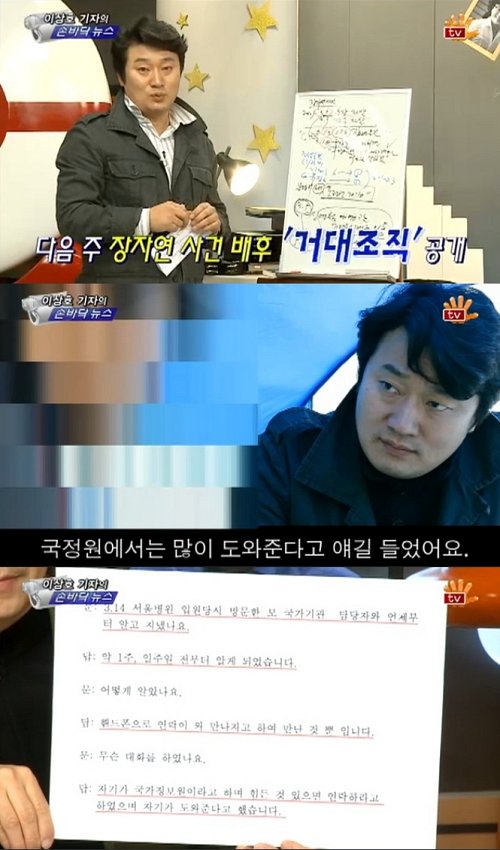 이상호 MBC 기자가 ‘고(故) 장자연 사건’에 국가정보원(이하 국정원)이 개입한 증거를 제시하며 또 다른 증거에 대해 암시했다.