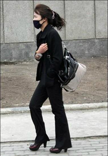 북한 평양의 시내에서 올 블랙 패션을 선보인 여성이 포착됐다.