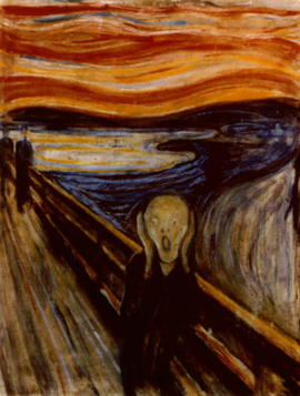 | 한때 인간적 질서의 일부로 받아들여졌던 광기는 근대 이후 도덕규범의 획일적 어둠 속에 묻어 격리된다. 광기는 더 이상 인간이 알 수 없는 신비성의 번뜩임이 아니라 그저 치료해야만 하는 병리학적 징후에 지나지 않게 됐다. 그림은 뭉크의 ‘절규’. 세계일보 자료사진 |