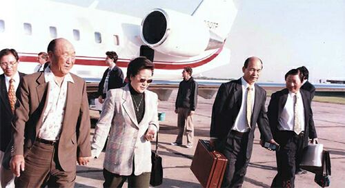 문선명·한학자 총재 내외가 1997년 9월 17일 남미 아르헨티나 코리엔테스 파소데라 파트리아시 파라나강을 답사하는 일정을 송영섭 총회장이 곁에서 수행하고 있다.