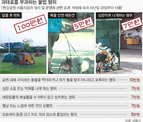 한강사업본부 관계자는 “무질서 행위의 상당수는 시민들이 어떤 것이 불법인지 몰라서 저지르는 것”이라며 시민들의 관심을 당부했다.