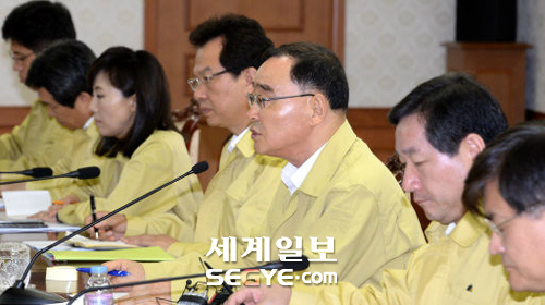 정홍원 국무총리(오른쪽 세 번째)가 22일 오전 광화문 정부서울청사에서 열린 국가정책조정회의를 주재하며 모두발언을 하고 있다.