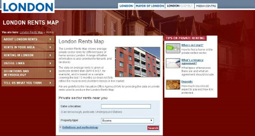| 서민 주거권 보호는 알권리 확보에서 시작한다. 대부분의 선진국은 임대료의 합리적 규제를 자연스럽게 받아들이고, 세입자가 계약에 앞서 투명한 임대료정보를 공급받는 것을 당연시한다. 박은철 서울연구원 연구위원은 “영국 런던 임대료 지도가 공개되고 독일 표준임대료 일람표가 발표되는 것처럼 우리나라에서도 세입자들이 월세를 정확히 파악할 수 있도록 해야 한다”고 지적했다. 사진은 영국 정부에서 운영하는 런던의 임대료 지도 사이트 첫 화면. 런던 ‘렌트맵’ 홈페이지 캡처 |