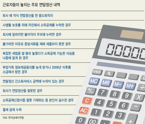 또 회사에 알려지면 불이익이 우려돼 누락한 경우도 있다. 본인 의료비 과다지출, 자신이 장애인인 사실, 대학원에 다니고 있는 사실 등을 회사에서 알게 되면 불이익을 당할까 교육비 공제를 자진해서 빠뜨린 경우도 충분한 추가 환급 신청 사유가 된다.