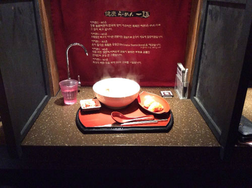 28일 오후 서울 지하철 2호선 신촌역 인근의 한 일본 라면집을 들어서자 무인 자판기가 눈에 들어왔다. 자판기에서 음식을 주문하고 돌아서니 ‘공석 표지판’이 보인다. 커튼을 걷고 들어가면 독서실처럼 생긴 1인석이 마련돼 있다. 자리에 앉아 벨을 누르자 종업원이 와서 식권을 받아갔다. 잠시 후 주문한 음식을 들고 온 종업원은 음식을 테이블에 내려놓은 뒤 커튼을 쳤다. 다른 손님과 눈을 마주치지 않게 하기 위해서다.