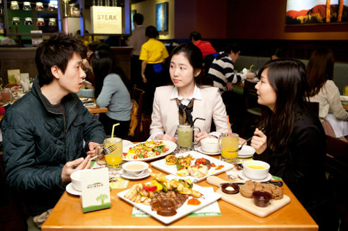 | 1일 서울의 한 아웃백스테이크하우스 점포를 찾은 고객들이 식사를 하고 있다. 아웃백스테이크하우스 제공 |