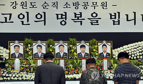 정부는 순직한 소방공무원 5명을 특별 승진시키고 정성철 소방경에게는 녹조근정훈장을, 박인돈(50) 소방위, 안병국(38) 소방장, 신영룡(42) 소방교, 이은교(31) 소방사에게는 옥조근정훈장을 추서하기로 했다.