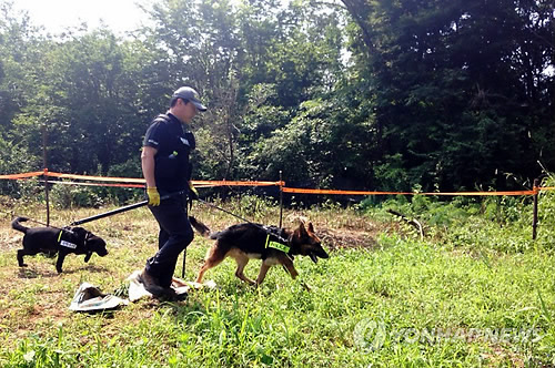 또 이날도 경찰 전문가 4명과 함께 수색견 4마리를 활용, 사체 발견 지점을 중심으로 유류품 확보를 위한 세밀한 분석을 벌이고 있다.