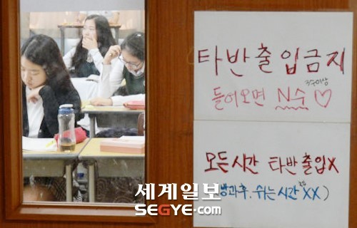 | 2015학년도 대학수학능력시험을 앞둔 서울 필운동 배화여고 3학년들이 막바지 공부에 열중하고 있다. 김범준 기자 |