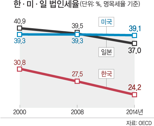 한국 세율낮아 ‘감세정책’ 논란 일어