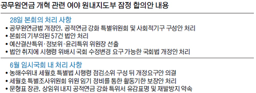 일각의 반발로 추인이 무산되자 당 지도부는 해당 조항을 법사위 소위원회에 위임해 위헌여부를 판단하게끔 하자는 중재안을 새정치민주연합에 제의했다. 김 대표는 기자들과 만나 “공무원연금 개혁안이 아무리 중요하고 급하지만 통과시키기 위해 위헌 소지가 있는 법을 만들 수는 없다”고 강조했다.
