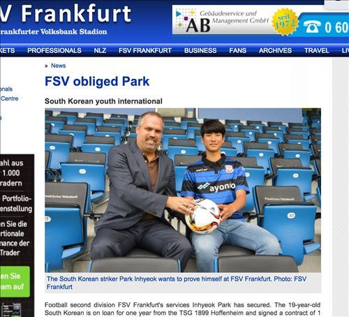 분데스리가 2부의 FSV프랑크푸르트는 27일(한국시간) 홈페이지를 통해 박인혁의 영입 사실을 알렸다.