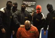 7초 분량 영상에는 주황색 옷을 입은 남성과 복면 차림으로 주위를 둘러싼 이 등 총 6명의 남성이 등장한다.