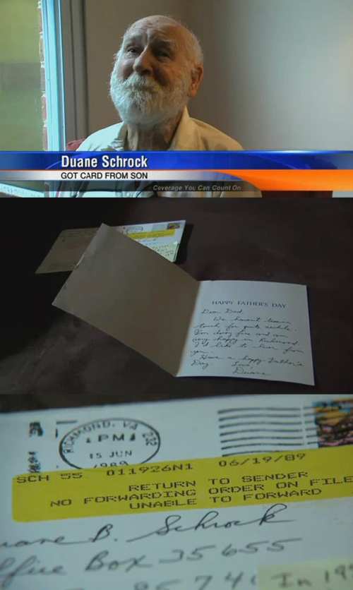 미국 WSET 등 현지 매체들에 따르면 버지니아 주에 사는 슈록은 ‘아버지의 날’이 며칠 지난 뒤, 편지 한 통을 받았다. 미국의 ‘아버지의 날’은 매년 6월 셋째 주 일요일이다.