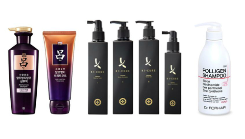 <사진자료 = 려 ‘자양윤모 탈모방지 샴푸액&트리트먼트, 가라사대 주식회사 케이원큐어 4종, 닥터포헤어 ‘폴리젠샴푸’> |