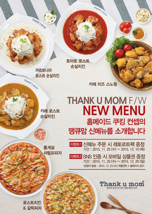 땡큐맘치킨 2015 F/W 신메뉴는 집에서 만든 음식처럼 건강하고 맛있는 ‘홈메이드 쿠킹’ 컨셉의