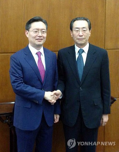 | 황준국 외교부 한반도평화교섭본부장(왼쪽)과 우다웨이(武大偉) 중국 외교부 한반도사무특별대표<<연합뉴스 자료사진>> |