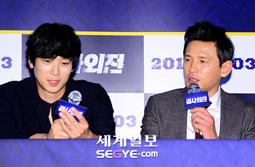 배우 황정민이 25일 오후 서울 강남구 삼성동 메가박스에서 열린 영화 '검사외전' 언론시사회에 참석해 질문에 답하고 있다.