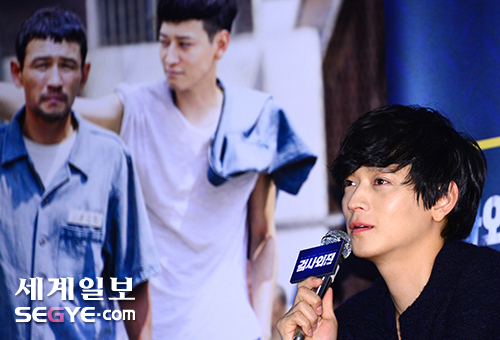 배우 강동원이 25일 오후 서울 강남구 삼성동 메가박스에서 열린 영화 '검사외전' 언론시사회에 참석해 질문에 답하고 있다.