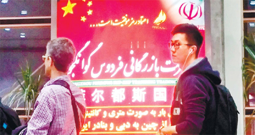 | 이란 진출한 중국 무역회사 광고판 이란에 진출한 중국 무역회사의 광고판이 이란 테헤란의 이맘 호메이니 국제공항 탑승구에 설치돼 있다. 최근 이란을 방문한 중국 시진핑 국가주석은 하산 로하니 이란 대통령과 정상회담을 갖고 양국의 교역규모 확대를 약속했다. 테헤란=연합뉴스 |