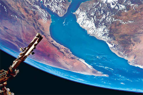 | 미국 항공우주국(NASA)이 10일 공개한, 우주에서 본 아덴만과 아프리카 모습을 담은 사진이다. 저자는 우주의 비밀을 풀 수 있는 열쇠는 수학방정식이라고 주장한다. 연합뉴스 |