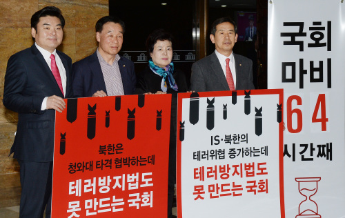 이에맞서 새누리당 조원진 원내수석부대표는 "테러방지법은 수개월 동안 정보위 여야 간사가 합의한 법안"이라며 절대 수정 불가 입장을 분명히했다.