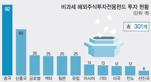 26일 금융투자업계에 따르면 29일 출시되는 비과세 해외주식형펀드는 310개다. 운용 중인 펀드 중에서 규모 있고 안정적으로 운용되고 있는 펀드가 선별돼 비과세 전용 펀드로 전환했다. 286개가 기존에 있던 펀드이고, 신규로 24개 펀드가 선보인다. 한국거래소에 상장된 해외주식형 상장지수펀드(ETF) 10개도 비과세 혜택을 받을 수 있다.